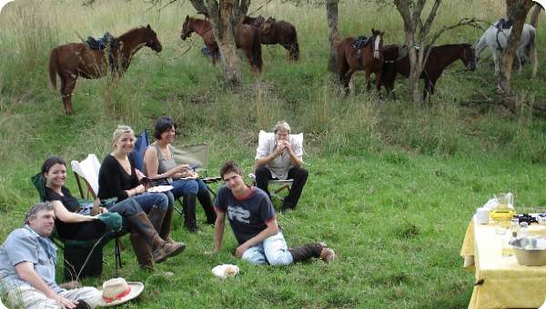 We will leave here at approx. 9:30 on the second day and ride 22km to our overnight camp at Mawelawela Game Farm. There is usually lots of plains game to see, as we will be riding for at least two and a half hours inside the Game Camp. Your overnight bags will have been taken by vehicle to Mawelawela and will be waiting for you when we arrive. We will stop for snacks/leg stretch/smoke break/ whatever and again later for saddlebag lunch. Chuffy and I will prepare supper and breakfast for you at Mawelawela while you soak up the peaceful atmosphere. Your overnight bags will be taken back to Larksend after breakfast. We should leave Mawelawela around 9:30 in the morning of the 3rd day and ride via a different, but shorter route home to Larksend in time for you to be on the road before lunch. |