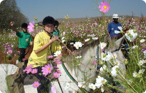 Day 2, after a hearty breakfast we will meet at the horses around 9:30. We will be riding a route of approx. 30km today to one of 2 choices of Guest Houses – Fodo or Thatchers. See description of routes in “Blesbok Trail”. The following morning we will continue a circle route back to Larksend – it will be a shorter route, as we will be back before lunch. There will, of course, still be time for a snack stop on the way home. |